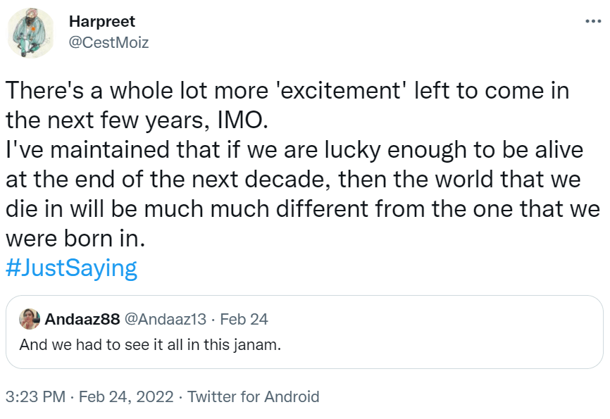 (Note: This chain of thoughts was tweeted by me on 01 March 2022. Putting it here in my blog for the sake of archiving it on another medium as well)