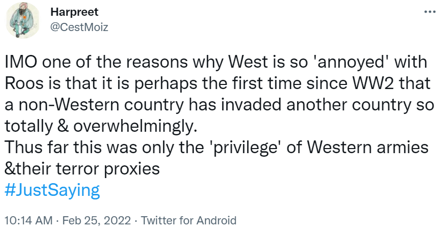 Unsurprisingly, reporting of the situation by Indian media too has been very one sided with absolutely NO perspective whatsoever that I have personally come across, from the Russian point of view.