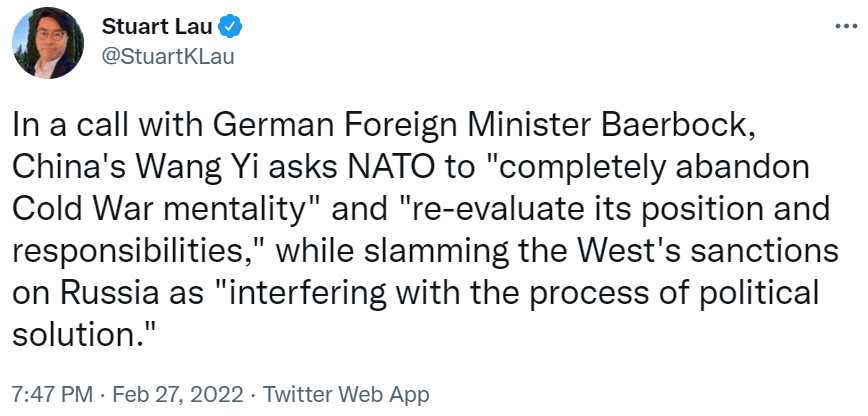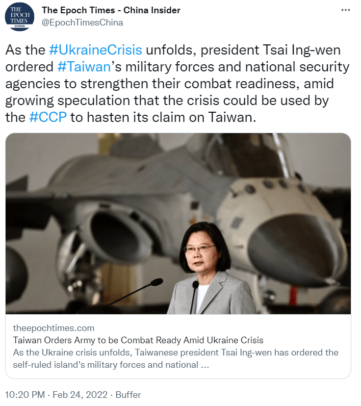 Now put into context this warning by the Taiwanese President BEFORE the Russian Attack!