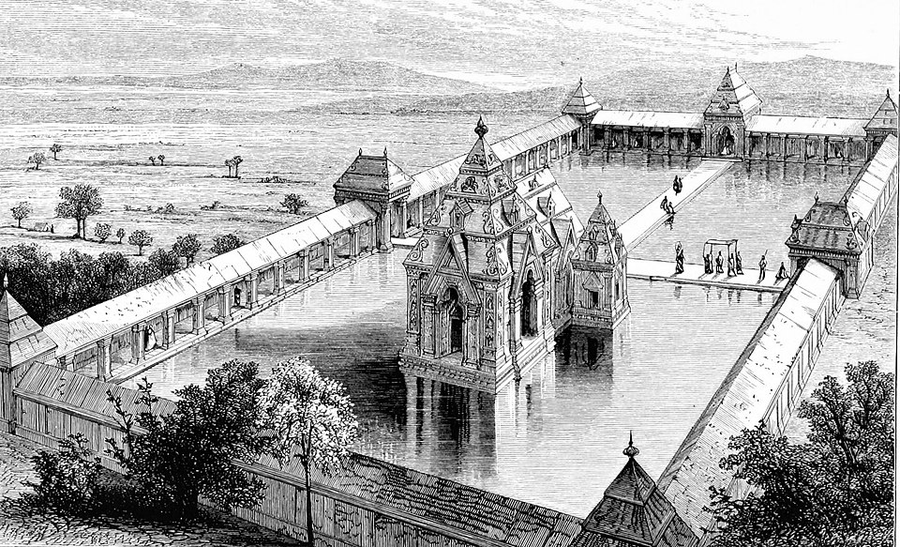 (Painting by Bishan Singh, 1872 : Kashmiri Hindus performing Sūrya Namaskār at the banks of the Vitasta)