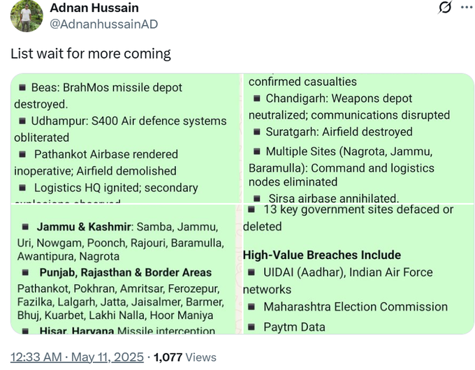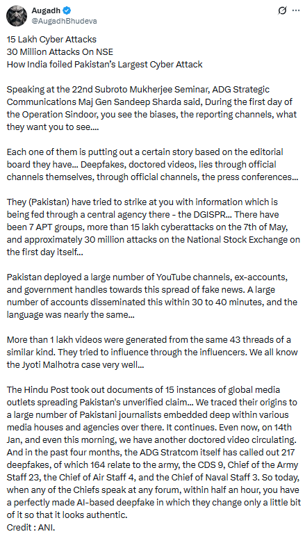 So this tweet below landed on my TL some days ago. It was about ADG Strategic Comms talking about the IW and Cyber warfare that India was subjected to on the first day of Op Sindoor.