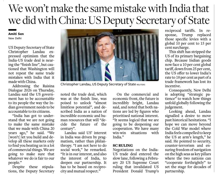 Basically, the US Deputy Secretary of State lays out the US gameplan in the ongoing trade deal negotiations with India.