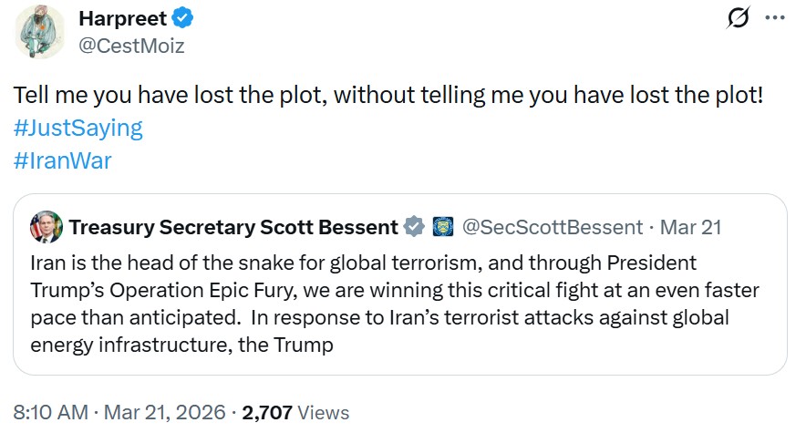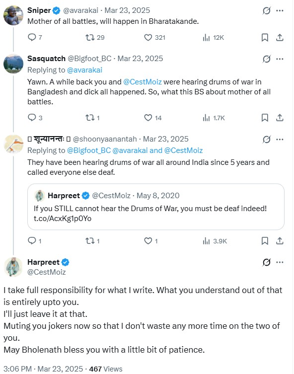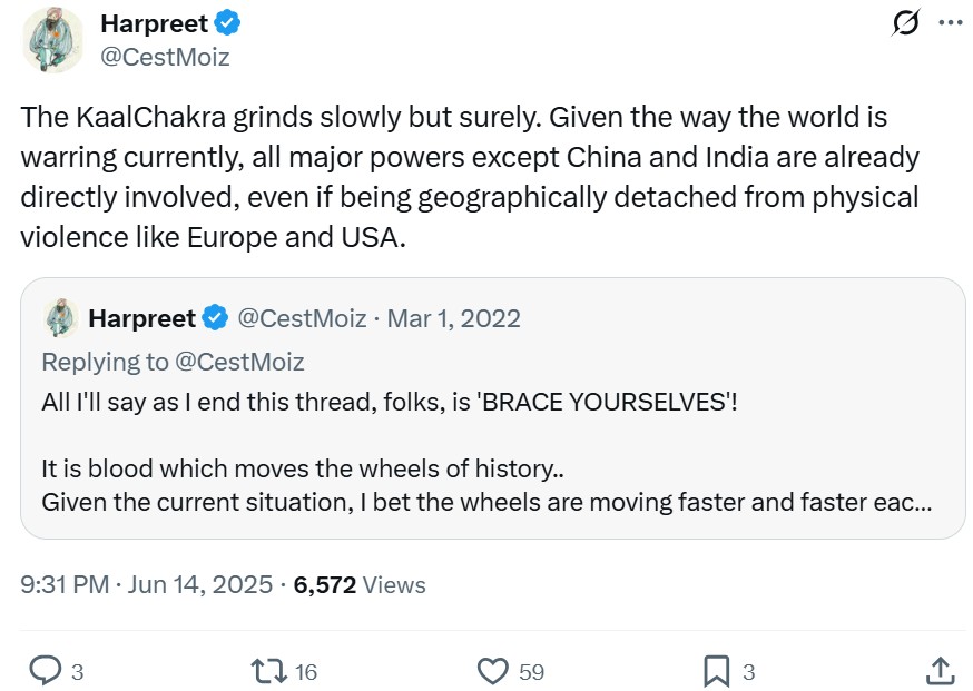 At the outset, I begin with the hope that Shri @Bigfoot_BC and Shri @shoonyaanantah Ji would be quite satisfied by now, having heard the ‘Drums of War’ in May 2025, June 2025 and now again in March 2026.