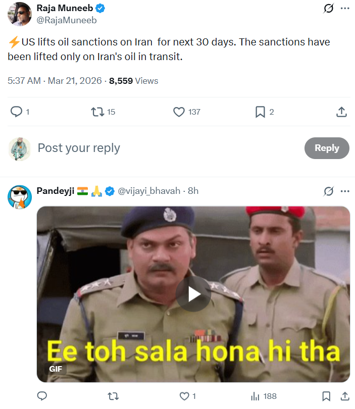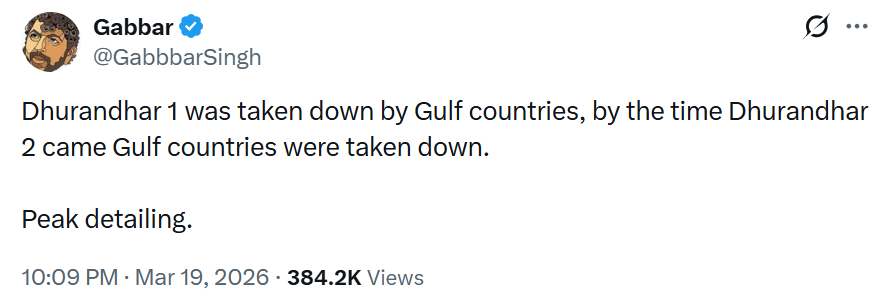 And as far as West Asia is concerned, they might want to make Dhurandhar 2 tax free!