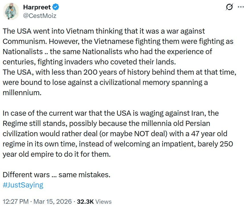 Coming on to the currently ongoing war in Iran, one still struggles to find what was the political and military aim of US / Israel as they went in and attacked Iran. And then they began with an opening salvo killing everyone in Iran who could have negotiated / talked with them!