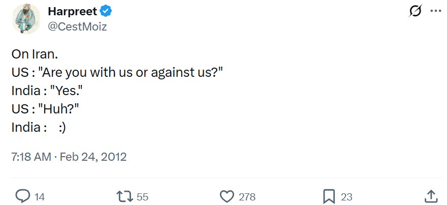 However, friendship at the point of a spear is not friendship. It is merely fear disguised as friendship, as the Gulf countries are now discovering to their peril. That said, the one thing where Indian diplomacy doesn’t get enough credit is for the fact that we have bridges and channels open with practically each and every party to the conflict in that region, be it Israel, or Iran, or KSA, or Qatar or Bahrain or UAE.