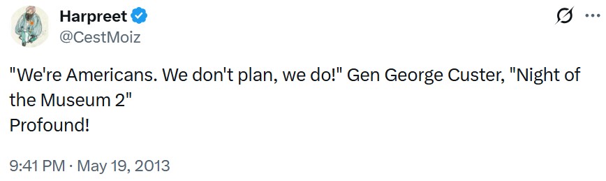 What has happened thus far is matter of public knowledge and I don’t intend writing much about that. However, I will most definitely share this tweet from 13 years ago that perfectly summarizes most of the American wars since WW2 thus far.