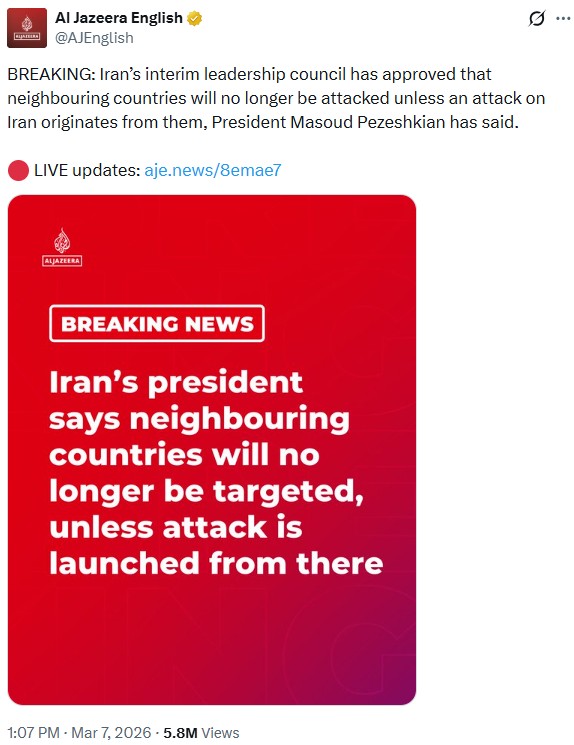 What is most amusing is that ALL calls for ending the war are coming from the American side, whereas Iran sits pretty, bombing other Gulf countries at will.